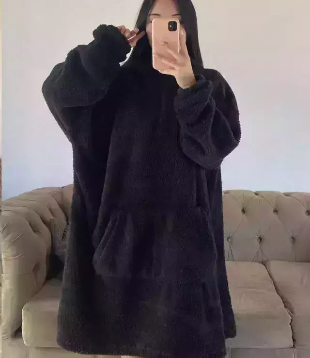 BUZO MANTA DE PELUCHE + PANTUFLAS DE PELUCHE DE REGALO